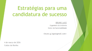 Adicionar um subtítulo (6) Lançamento 2026 | Programa | Fotografias | Apresentações Sessão de Lançamento da 6.ª edição Eco-Freguesias XXI Caldas da Rainha, 04 de março de 2026 | 14h30 Apresentações Apresentação – Programa 2026 Apresentação – Plataforma 2026 Apresentação – ABAAE e Eco-Freguesias XXI Apresentação – Bruno Lage Apresentação – Helder Simões (estesc)