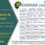De Novembro de 2025 a Julho de 2026, na terceira quarta-feira de cada mês, às 21h, a Rede InvECO convida todos os interessados para uma pequena palestra (ca. 30 min) onde se abordarão temas relacionados com os amplos desafios que as espécies exóticas invasoras colocam à sociedade, sendo cada apresentação seguida de um espaço para questões e debate de […]